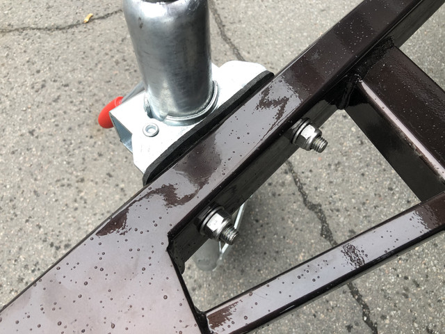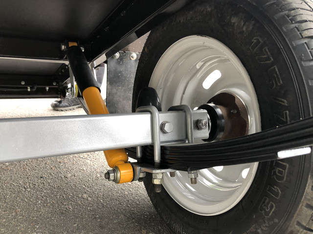 Перемички розміщені в перехресному вигляді, задні з кронштейнами під амортизатор. Дишло трикутне (квадрат 80/40, стінка 4 мм), знімне для зручності зберігання в закритих приміщеннях і перевезення причепа в розібраному вигляді.